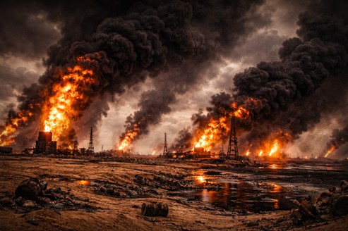 I pozzi petroliferi incendiati oscuravano il cielo per chilometri.