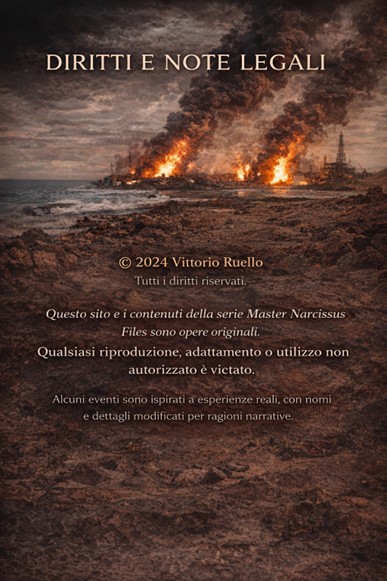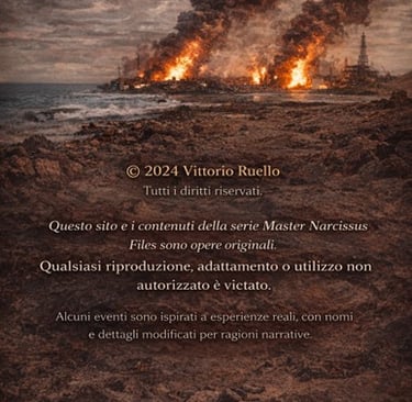 Tutti i contenuti presenti su questo sito, inclusi testi, immagini, loghi e materiali relativi al progetto Master Narcissus Files e al romanzo Il Contratto del Fuoco, sono protetti dalle leggi sul diritto d’autore.
