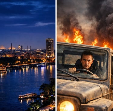 pozzi di petrolio in fiamme, mine nel deserto, guerra appena finita.